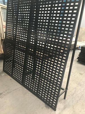 瓷磚展架沖孔板在沖孔完成以后進(jìn)行校平處理,校平完成以后進(jìn)行靜電粉末噴涂,顏色多為黑色,也可定制其他顏色。